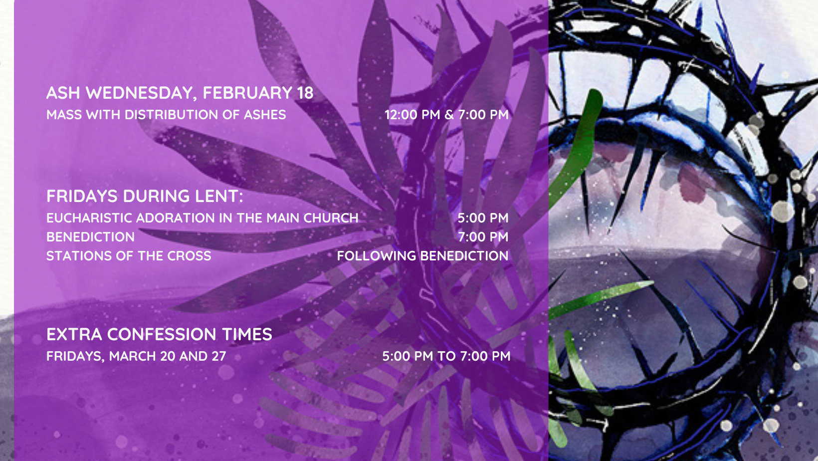 Join us from 6:00 PM - 8:00 PM for the Lenten Mission on Wednesday and Thursday, March 4th and 5th. Keynote speaker Father Nathan LaLiberte will speak on "The Woman at the Well: New Life in Christ."